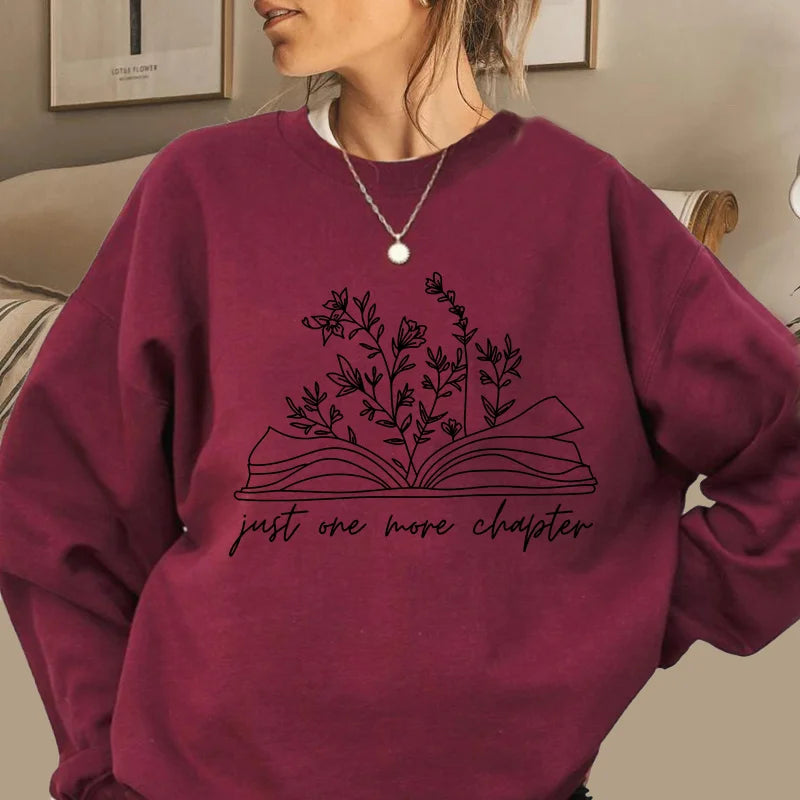 Cuddle up in our Book Lover Just One More Chapter Sweatshirt and get lost in your favorite book (or four, we won't judge). With a cozy fit and playful design, this sweatshirt is the perfect addition to any bookworm's wardrobe. Don't believe us? Just ask the never-ending pile of books on our nightstand.