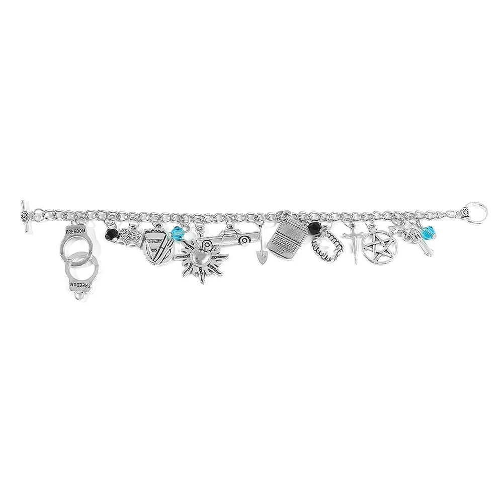 Unleash your inner hunter with this Supernatural charm bracelet! Designed for devoted fans, this collectible accessory features iconic imagery and symbols straight from the beloved series. Whether you're team Winchester, obsessed with the lore, or just can't get enough of demons and angels. It's the perfect way to carry a piece of the show with you wherever you go. Playful, customisable, and absolutely spellbinding for anyone who's binged every season. Show your fandom in style!